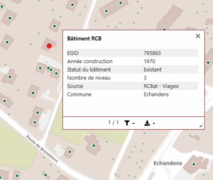 Les données du registre cantonal des bâtiments (RCBat) ont été ajoutées sur l’ensemble des communes partenaires grâce au téléchargement disponible sur viageo.ch.